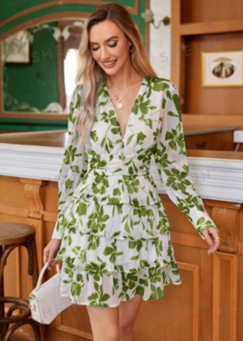 Sé el primero en valorar “Vestido de manga larga con estampado floral y volantes en la parte de la falda”